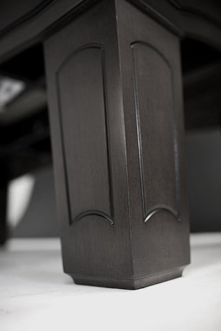 Princeton Black 8 foot pool tables are equipped with genuine leather pockets, hand carved, solid wood legs and genuine mother of pearl circular sights. Its Black finish blends in perfectly with traditional billiard room furniture such as a bar and stools, poker tables or foosball tables. A stunning and stylish rugged construction that will elevate the fun and look of your home or business recreation room, family game room or man cave. Features a 25 year manufacturers warranty.