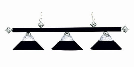 | Metallic Finish & Halophane Glass Matte Black & Stainless 3 Light Billiard Fixture |