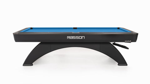 Rasson Challenger competition pool table. Available in both 8 foot or 9 foot formats. As shown on televised international competitions, there is no other pool table as sophisticated and highly regarded by professional players. This incredible pool table model also includes a choice of 28 colours of Championship Invitational brand Teflon protected billiard felt cloth .