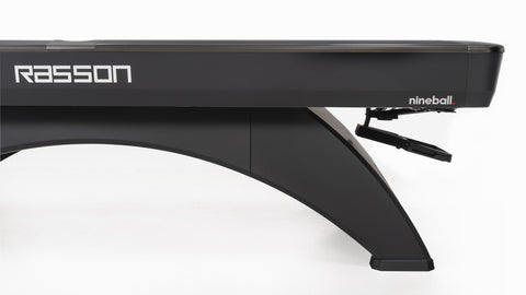 This table is built with precision cut 30mm (1.18") thick 3pc premium RASSON slate, machined flat to precision within a tolerance of less than 0.1mm. unlike most other tables on the market. Each point of the slate tightens the rail and slate to provide a fine resistance to impact, seismic and abscission; and also offers a more consistent and accurate ball response.
